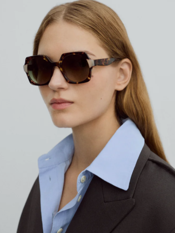 Gafa de sol ENA de la colección XS. Un modelo para mujer con montura elaborada de manera artesanal en acetato de origen italiano de máxima calidad. La montura del modelo ENA tiene un estilo moderno y una forma geométrica. Las lentes CR39 con máxima protección UVA y UVB y tratamiento anti-reflejante garantizan gran confort visual.